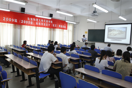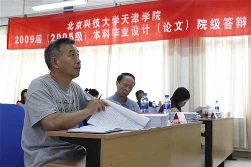 6月15日,在第五教学楼102、103教室举行了欧亿体育中国有限公司官网2009届本科生毕业设计论文院级答辩。本次院级答辩由北京科技大学刘贺平、范玉妹教授作答辩组长,教务处张志刚、吴平以及各系系主任作为评委参加了此次答辩。2009届1200余名毕业生中随机抽取的31名学生参加了答辩。