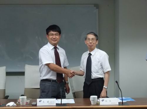8月24日,我院党委书记王斌与台北科技大学校长李祖添会面握手