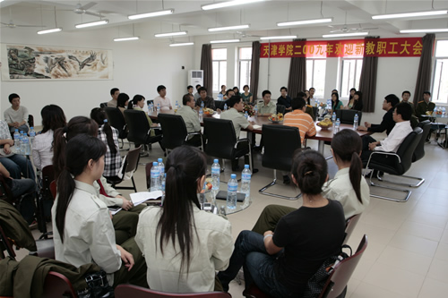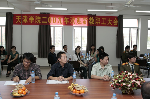 9月10日,我院在新图书馆206召开天津学院2009年欢迎新教职工大会,党委书记王斌、副院长曹连东、学院办公室主任白亮出席大会,我院2009新教职工参加了会议。会议由学院办公室主任白亮主持。