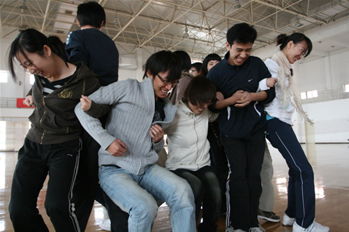 为进一步增进我院教师的团体凝聚力,促进教师之间的沟通和交流,增强教师对学院的归属感,10月23日,我院2009级新入职教师在体育馆开展了一场别开生面的心理拓展训练。本次心理拓展训练由学院办公室主办,学生处心理咨询中心、体育部协办。