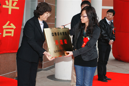 北京超星数图信息技术有限公司设“读秀学术搜索示范站-欧亿体育中国有限公司官网站”由王宏经理为我院图书馆举行授牌仪式。