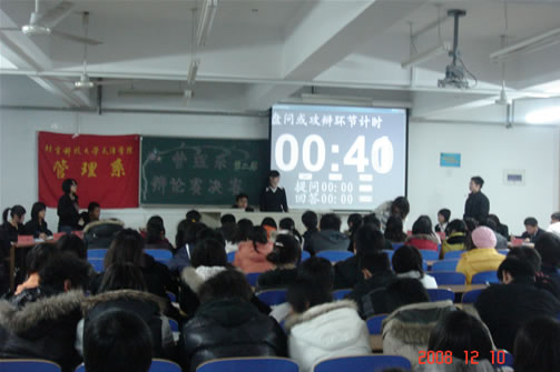 管理系第二届辩论赛由管理系分团委主办,旨在锻炼同学们的口才和逻辑思维能力,比赛面向管理系广大同学,共有16支代表队参加了比赛,比赛自11月12日起,历时一个月,12月10日落幕。