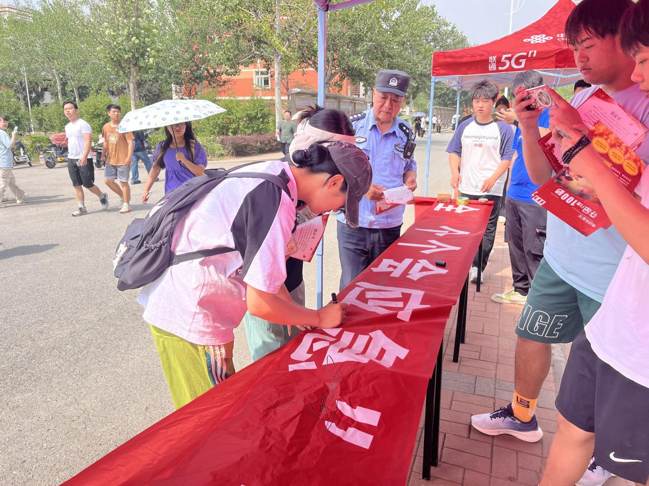 随着下课铃声到来,京津新城消防救援站的指战员、新城派出所民警、学院保卫处工作人员和学生安全志愿者一起走上校园街头,发放“畅通生命安全通道倡议书”,邀请广大师生参与“安全承诺践诺签名活动”,争做平安天院的建设者。