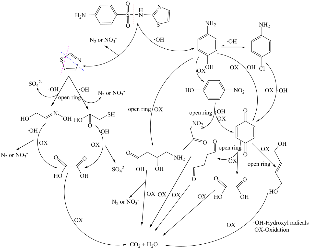 论文针对有机废水处理难题,聚焦于制备具有异质结结构的Si3N4-PbO2纳米复合电极,同时对Si3N4纳米颗粒和PbO2晶体(110和101晶面)的结合能进行了计算,通过理论计算验证了该电极的优异性能,并将其应用于磺胺噻唑的降解过程中,探究了磺胺噻唑的降解机理和反应活性位点等,同时验证了该电催化降解磺胺噻唑的过程是生理毒性逐步降低的趋势。该研究成果在高污染废水处理领域具有良好的应用前景。