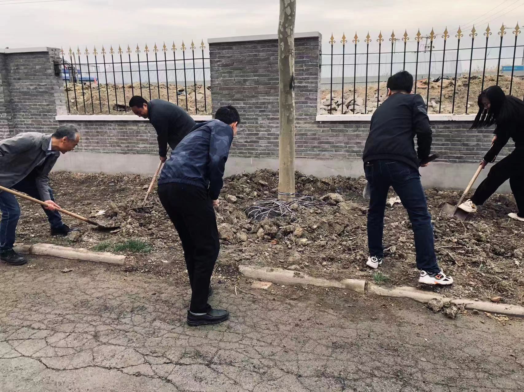 4月9日,在副院长张永锋的带领下,后勤处全体成员共同行动,纷纷来到指定的植树地点,挥锹铲土、扶树填土、培土浇水,齐心协力投入到植树活动中。