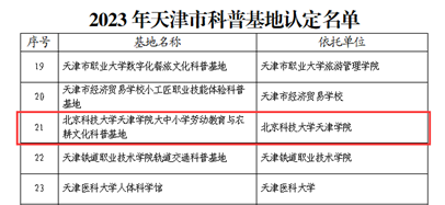 近日,天津市科技局公布了2023年度天津市科普基地名单,我院依托劳动基地申报的“欧亿体育中国有限公司官网大中小学劳动教育与农耕文化科普基地”成功入选。本年度市科技局、市教委、市科协对140家申报单位进行了形式审查、材料评审、集中答辩、实地勘察、部门评议,并经市科技局局长办公会审议、网上公示等环节,最终认定58家单位为2023年天津市科普基地。