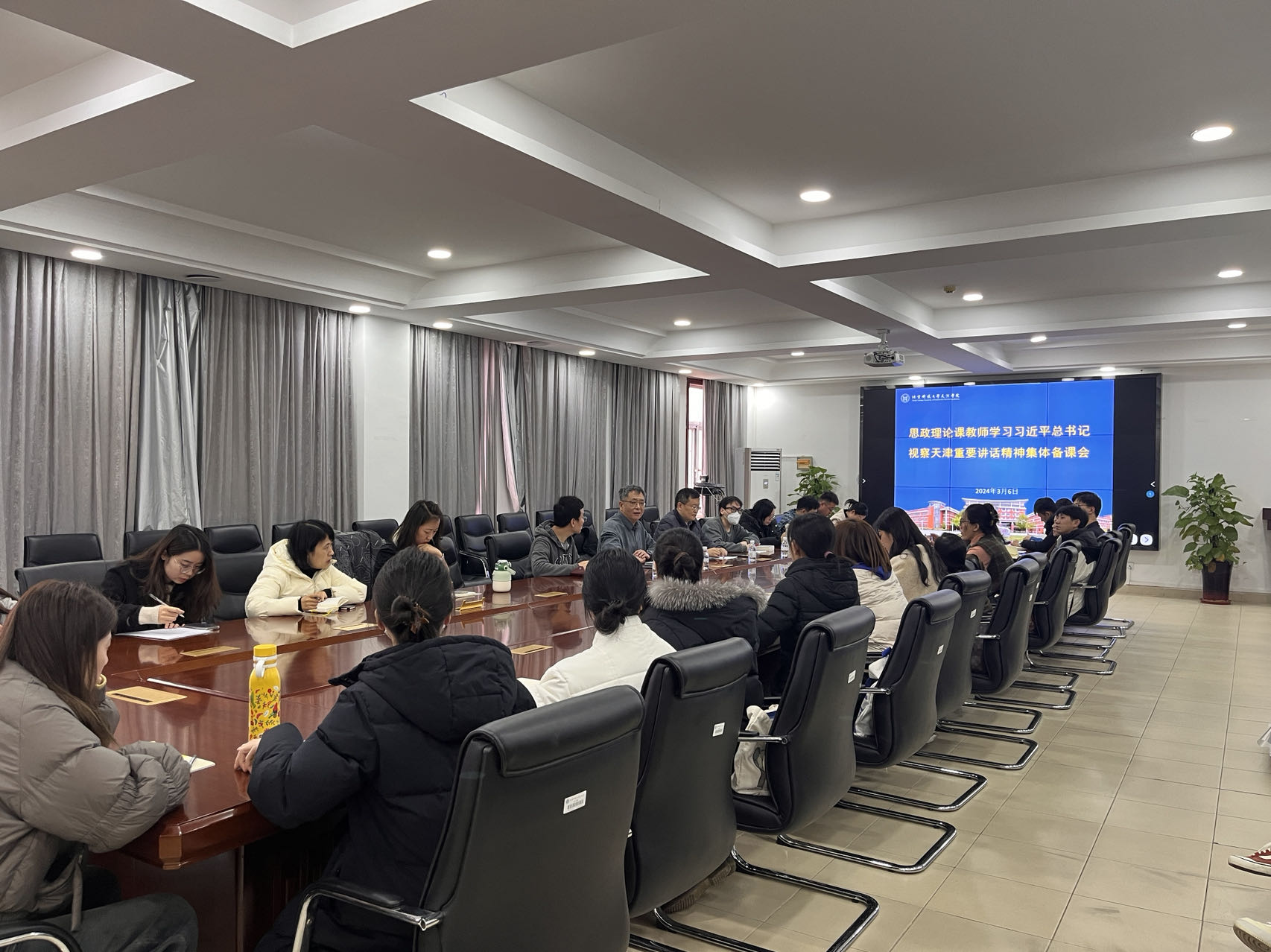 3月6日,思政部举办学习习近平总书记视察天津重要讲话精神集体备课会,会议由思政部主任陈弘主持,全体思想政治理论课教师参加了会议。