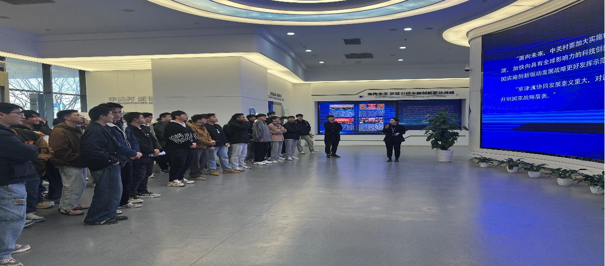 我院学生首先参观了京津中关村科技城展示中心,工作人员介绍了宝坻区区域发展和招商引资、招才引智政策,让同学们感受宝坻的发展速度和城市魅力;同时介绍了中关村科技城的战略定位、产业布局和发展前景,帮助同学们深入了解中关村科技城。