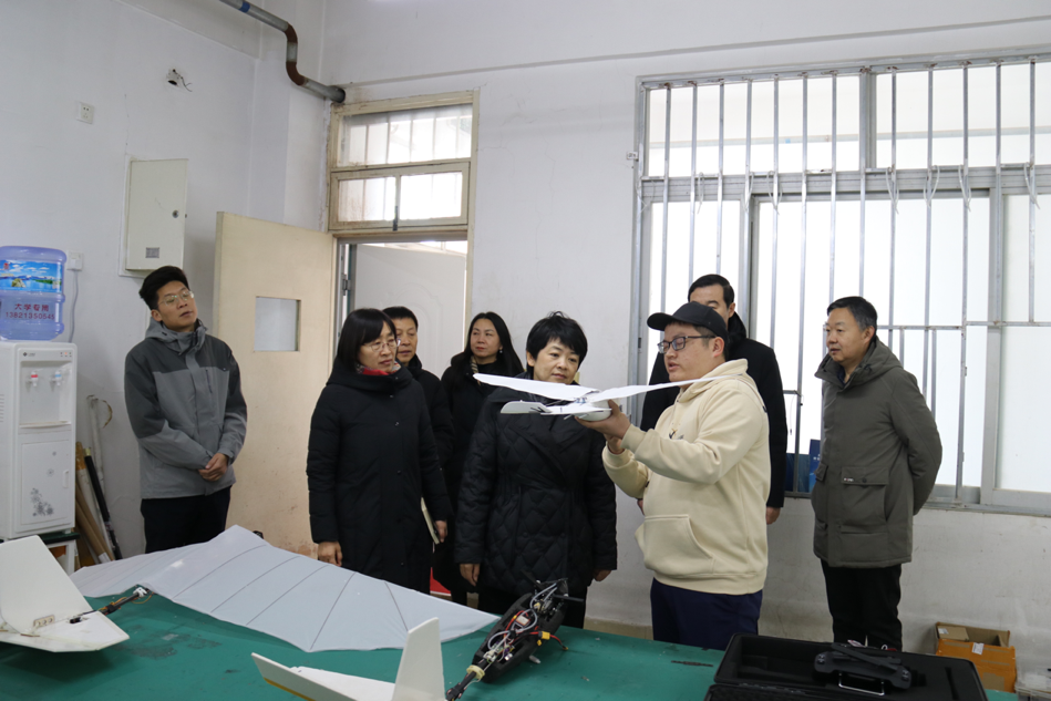 区委领导一行实地考察了我院无人机展厅,现场观摩了无人机飞行演练,参观了艺术设计系非遗传承工作室教学成果展,对学院专业建设、人才培养成果及对宝坻区文旅工作所做的贡献给予充分肯定。
