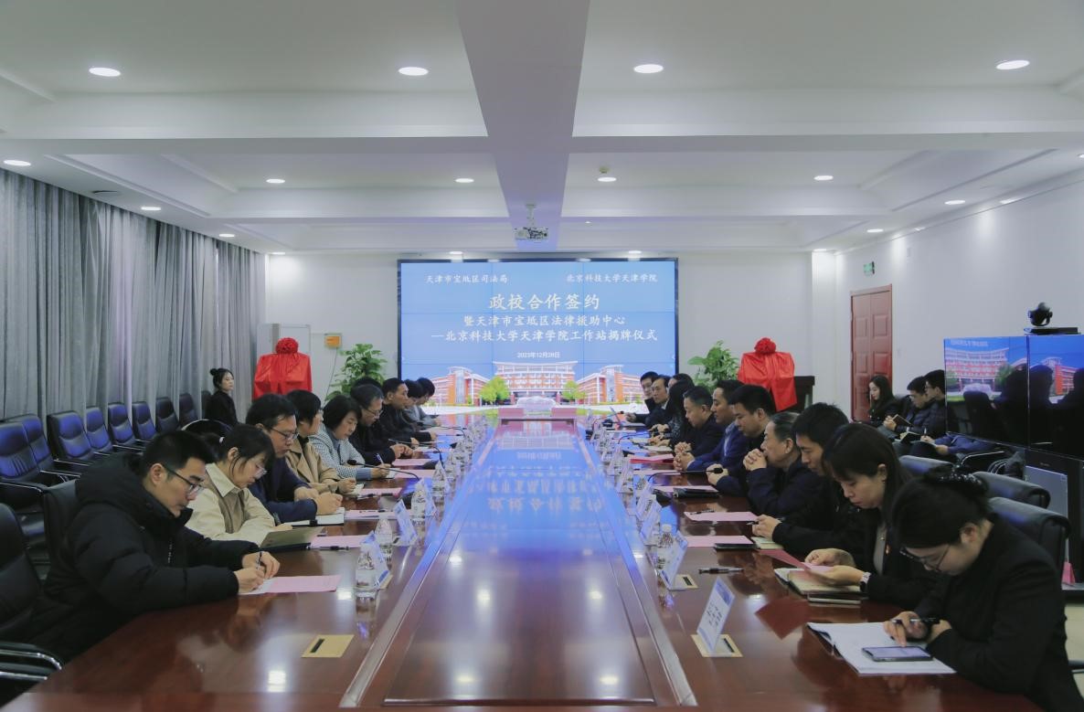 2023年12月28日上午,天津学院与宝坻区司法局政校合作签约暨“天津市宝坻区法律援助中心-欧亿体育中国有限公司官网工作站”揭牌仪式在12教300会议室隆重举行。宝坻区司法局党委书记、局长高万通,党委委员、二级调研员任宏坤,党委委员、副局长王国强,党委委员、副局长贾丽佳,宝坻区法律援助中心负责人王永泉,周良司法所所长杨宝华一行莅临仪式现场;我院丁煦生院长、张永锋副院长、王俊敏副院长、赵志南副书记、郭雅娟副书记以及党办、院办、产学研办公室、法律系相关负责同志和教师代表出席活动。签约仪式由法律系主任朱京安教授主持。