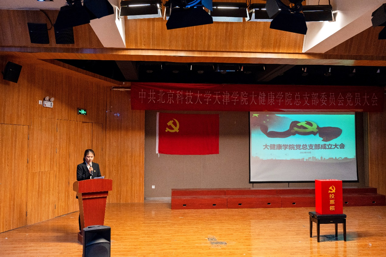 大会清点到场党员人数,确认符合选举的有关规定,并在庄严的《国歌》声中开幕。首先,宋存义同志代表学院党委宣读了《关于成立大健康学院党总支的批复》,对党总支部委员会委员设置、党员组织关系转接及党总支部委员会选举等工作作出指示。