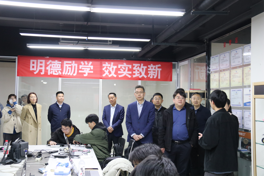 周国良处长一行认真听取了学院关于毕业生就业、劳动教育和创新创业教育的工作介绍,实地考察了无人机展厅和众创空间,并现场观摩无人机飞行演练和智能车展示。