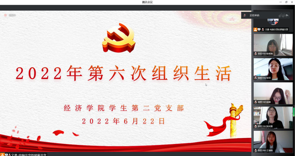 为激励广大党员坚定理想信念,不忘初心、牢记使命,重温党的光辉历史,继承和发扬党的光荣传统和优良作风,进一步增强党的凝聚力和战斗力,6月22日,经济学院学生第二党支部通过腾讯会议线上形式开展2022年第六次组织生活和“追寻红色足迹,传承伟大建党精神”主题党日活动。天津学院院长、党委书记丁煦生与党支部全体师生党员参加,此次活动由党支部书记文勇同志主持。