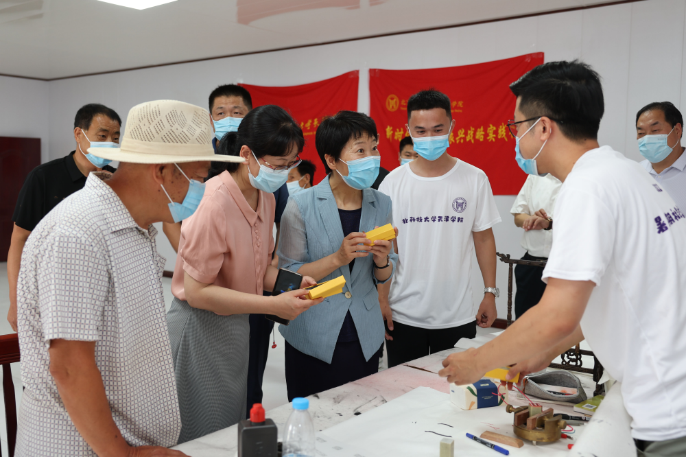 为进一步发挥社会实践的育人功能,引导广大学生在实践体验中深入学习领悟习近平新时代中国特色社会主义思想的深刻内涵和伟大历史成就,深化爱党爱国爱社会主义教育,以良好的精神风貌迎接党的二十大胜利召开,市教育两委印发了《关于开展2022年“青春传薪火,奋斗恰年华”新时代实践行系列活动暨“青年红色筑梦之旅”主题实践活动的通知》,欧亿体育中国有限公司官网贯彻落实市教育两委文件精神,在落实防疫要求的前提下,稳妥推进新时代实践行活动。日前,市委教育工委副书记、一级巡视员张弢带领部分机关党员干部调研了我院在宝坻区口东镇西齐各庄村党群服务中心参与“津教·爱心驿站”实践活动,副区长吴志华等陪同调研。