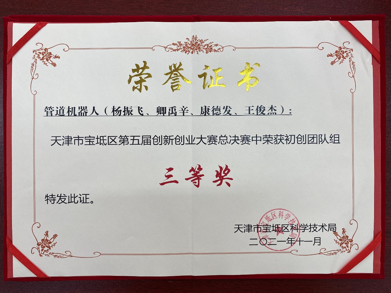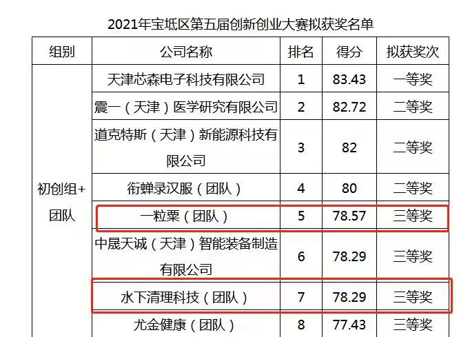 近日,以“科技创新、圆梦宝坻”为主题的“宝坻区第五届创新创业大赛暨第十届中国创新创业大赛”圆满结束。本次大赛由宝坻区科技局、宝坻经济开发区管理委员会、京津中关村科技城管理委员会、天津京津中关村科技城发展有限公司联合主办,宝坻区团委和宝坻区人才办协办,天津北大科技园有限公司承办。大赛宣传期间,我院就鼓励广大师生积极参加此次比赛。经过创业团队的悉心准备,我院《一粒粟》和《水下清理科技》两个项目在所有参赛项目中脱颖而出,荣获三等奖2项。