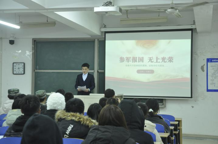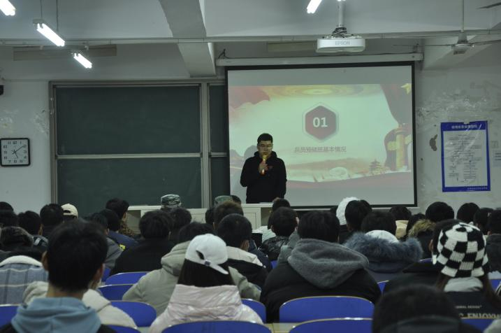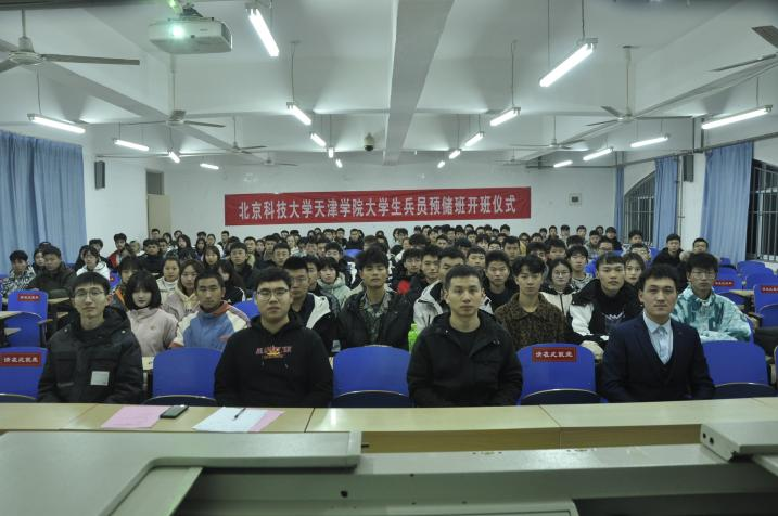 为主动适应征兵工作新形势,总结提高我院征兵工作,按照天津市人民政府征兵办公室、天津市教委相关文件要求,进一步健全完善征兵工作运行机制和保障体系,着力推动我院征兵工作高质量发展,11月7日下午欧亿体育中国有限公司官网2021年兵员预储班开班仪式在8教104举办,武装部副部长周少华,武装部干事韩子玉、李雲啸以及预储班学员100余人参加了此次开班仪式。