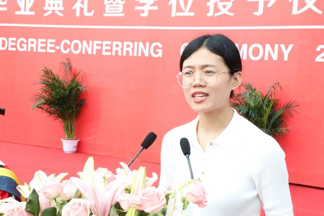 学院院长王斌代表学校,向圆满完成学业的同学们表示最热烈的祝贺,向辛勤付出的父母和老师致以最崇高的敬意!王斌院长对毕业生给予了殷切的希望和深切的祝福,他希望全体毕业生学之以恒、行之以实、守之以德,在学习中不断感悟人生、提升境界,保持积极进取、勇攀高峰的人生态度,牢记习近平总书记对青年的寄语,把正确的道德认知、自觉的道德养成、积极的道德实践紧密结合起来,不断修身立德,打牢道德根基,在人生道路上走得更正、走得更远。
