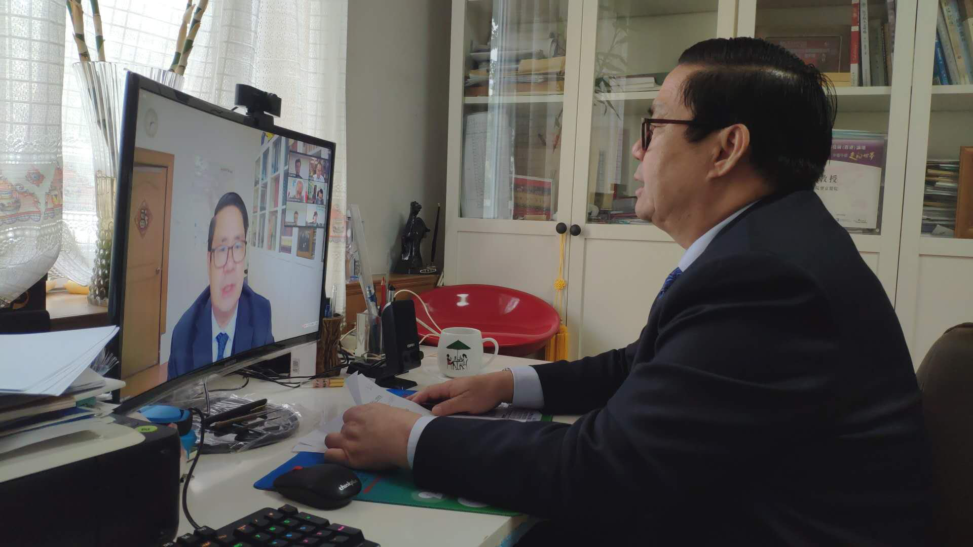 温建民委员在视频会议上发言