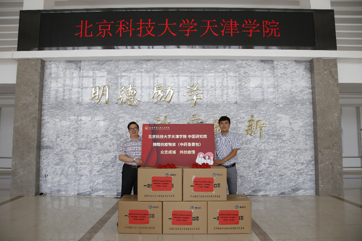 7月1日,中医研究院向全校员工捐赠了近千袋中药抗疫香囊包,捐赠仪式在行政楼前举行。学院副院长兼党委副书记叶振楠,大健康学院院长兼中医研究院院长温建民,院办主任郭雅娟,防控办主任殷实出席此次捐赠活动。
