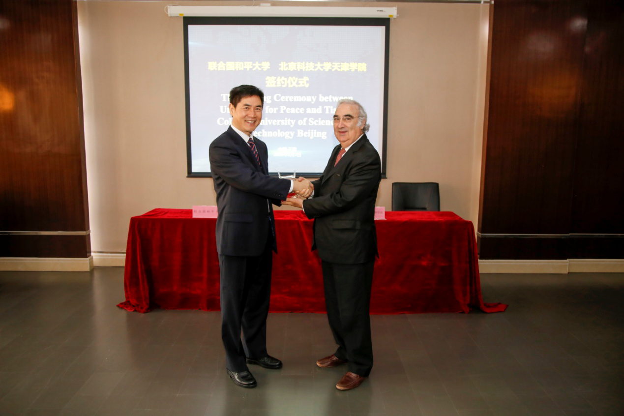 1月3日上午,联合国和平大学与欧亿体育中国有限公司官网合作签约仪式在我院举行。和平大学校长Francisco Rojas Aravena,联合国和平大学校董、中国国际跨国公司促进会常务副会长张笑宇,联合国和平大学中国中心总干事张馨元,珠江控股集团副总裁丁文,珠江股份集团教医事业部运营总监张静,天津学院院长王斌,党委书记丁煦生,副书记白亮、叶振楠、牛犁,财务总监王俊敏,学术委员会主席宋存义以及相关部门负责人出席签约仪式。